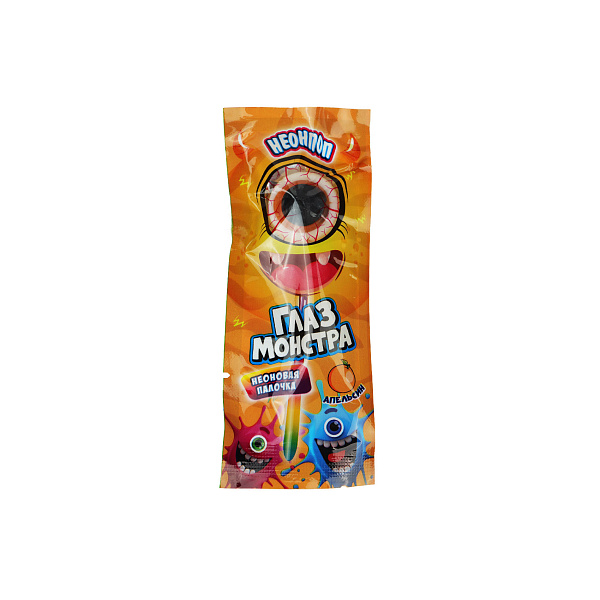 Каждый маленький сладкоежка будет рад оригинальным сладостям. Карамель в форме монструозного глаза расположена на длинной светящейся палочке, которая убережет руки от липкого фруктового сока и грязи. Сочный апельсиновый вкус медленно расходится по языку, оставляя после себя приятное цитрусовое послевкусие. В составе использована лимонная и яблочная кислота, они улучшают обмен веществ и поднимают тонус организму.
