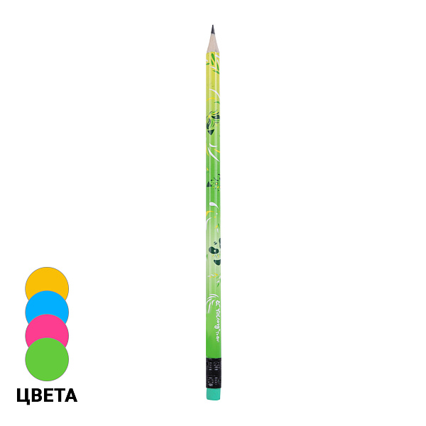Карандаш чернографитовый с ластиком Лесные жители в ассортименте
