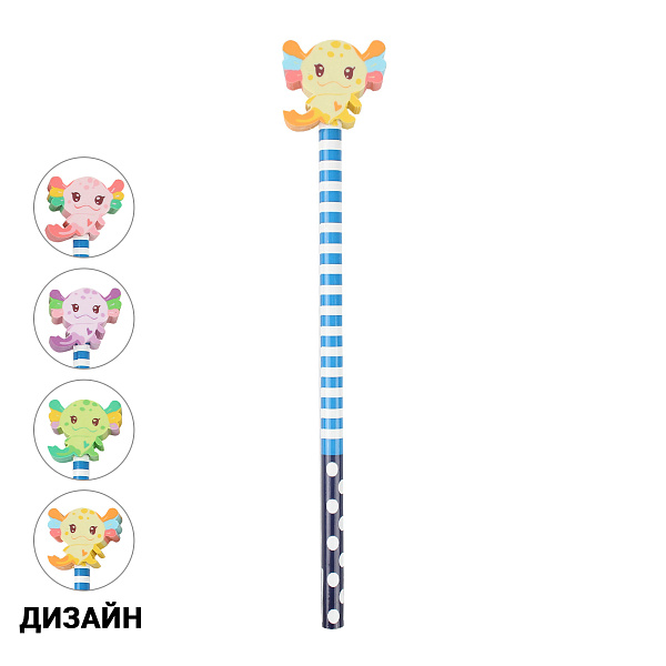 Этот чернографитный карандаш с ластиком станет отличным помощником в обучении и творчестве. Прочный грифель позволит долго использовать карандаш, сохраняя четкость линий. Круглый корпус удобно держать в руке. Ластик в виде аксолотля делает процесс письма и рисования увлекательным для ребенка, пробуждает воображение и творческое мышление. Этот карандаш подходит для использования дома и в школе.