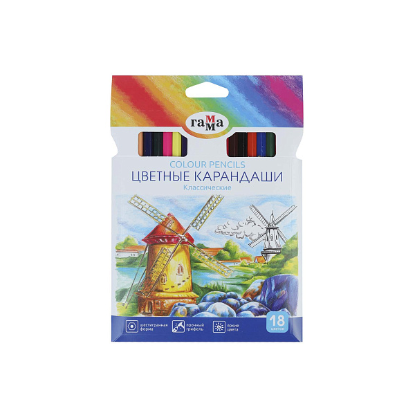 Карандаши цветные Гамма классические 18шт 18цв