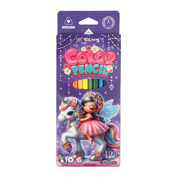 Карандаши Yalong Единорог и милая фея трехгранные 12цв