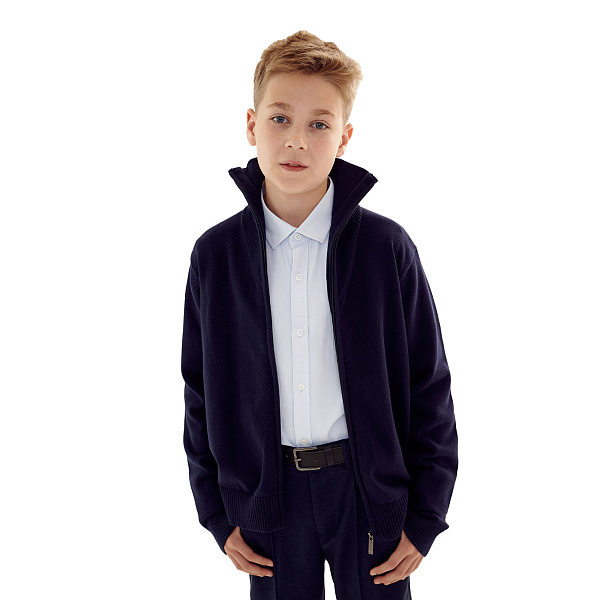 Кардиган из трикотажа с застежкой на молнии и высокой горловиной чудесно подойдет для мальчиков. Это лучший способ утеплить ребенка в холодное время года.