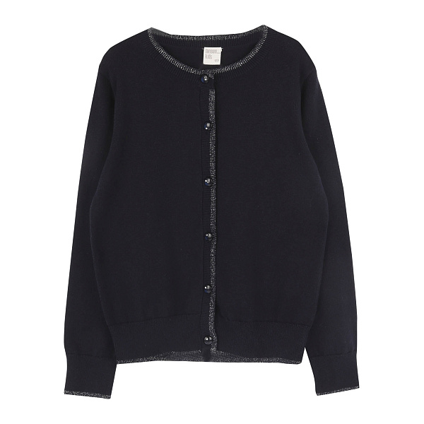 Кардиган с круглым вырезом и серебристой окантовкой темно-синий