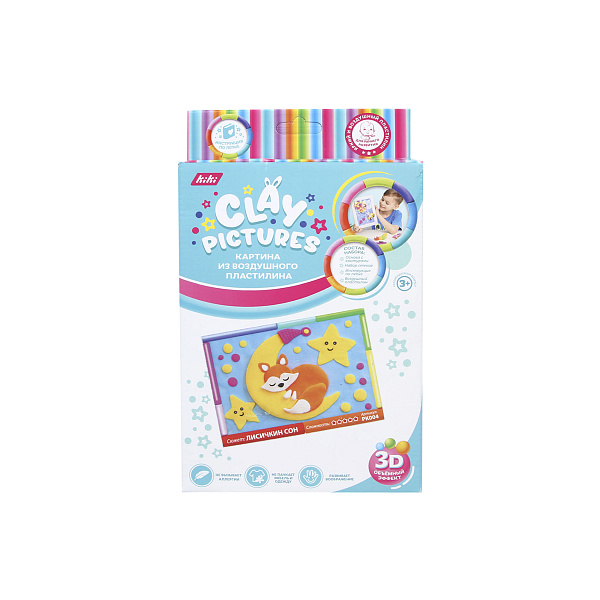 Картина из пластилина «Лисичкин сон» от бренда Kiki — это набор для творческих занятий, в ходе которых ребенок сможет слепить трехмерную картину с изображением забавной спящей лисички. Воздушный пластилин легко принимает нужную форму и затем наносится на основу с нарисованными контурами. С помощью пластилина разных оттенков создается объемная картина, которую можно затем повесить в детской комнате или подарить бабушке. Творческие занятия с пластилином очень полезны для детей детсадовского возраста. Они улучшают усидчивость, точность движений и аккуратность, а также развивают мелкую моторику пальцев рук.