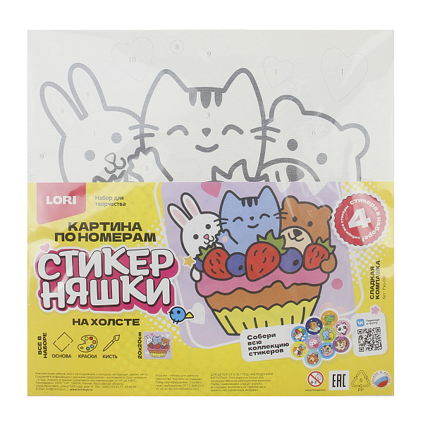 Набор для творчества «Картина по номерам Стикерняшки Сладкая Компашка» предлагает увлекательное занятие, в ходе которого ребенок сможет создать яркую и красочную картину с забавными животными, используя технологию раскрашивания по номерам. В комплект входят готовый холст с пронумерованными зонами, яркие акриловые краски, кисточка и подробная инструкция, которая поможет легко и шаг за шагом воплотить красочный замысел в жизнь.