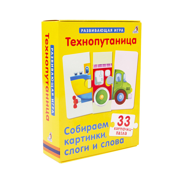 Увлекательная настольная игра «Технопутаница» состоит из 33 двухсторонних карточек, на одной стороне которых изображены транспортные средства, а на другой написано их название. Развивающая игрушка подойдет как для малышей, которые еще не умеют читать, так и для детей, делающих свои первые читательские шаги. Малыши учатся находить и составлять паззлы с изображением транспортных средств, а их более взрослые друзья смогут самостоятельно составить слова и проверить свою работу, сравнив полученное слово с изображением на оборотной стороне карточки.