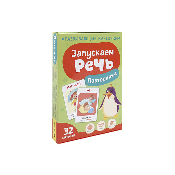 Научить ребенка говорить теперь намного проще, используя корточки «Запускаем речь. Повторялки». Набор состоит из упражнений и игр, созданных профессиональными логопедами, имеющих большой опыт и знания. Применяя технику повторения двустиший в игровой форме, можно поспособствовать запуску речи малыша, развитию у него чувство ритма и памяти. Вместе с набором повторялок дети учатся называть вещь, слыша характерный для нее звук, пробовать использовать новые слова, ритмично повторять за взрослым или самостоятельно издавать звуки отдельных устройств, например, тиканье часов.
