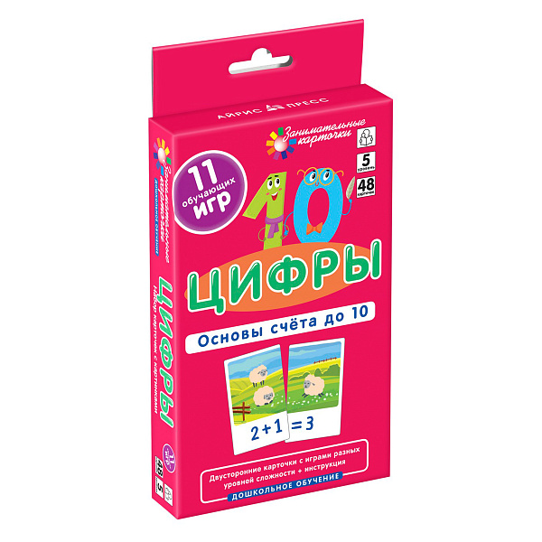 Игровой набор для детей «Цифры: Основы счета до 10» состоит из 48 карточек с цифрами, изображениями предметов и математическими примерами, которые позволят ребенку познакомиться с цифрами до 10, научиться их считать и соотносить цифры с количественными изображениями.