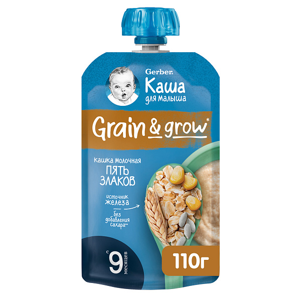 Кашу Gerber 5 злаков можно включить в рацион малыша, когда он подрастет и уже познакомится со всеми злаковыми кашами в отдельности. Оригинальная каша на молоке подойдет для малышей старше 9 месяцев, мягкая упаковка содержит одну порцию готового к употреблению продукта, его нужно только разогреть до нужной температуры.