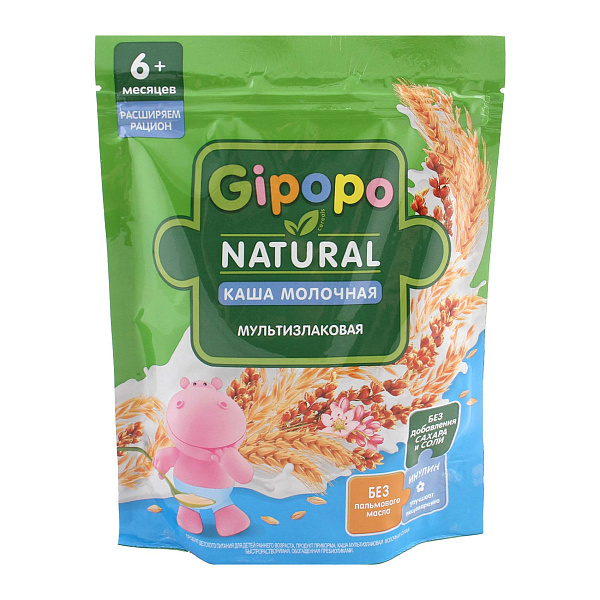 Молочная мультизлаковая каша «Gipopo Natural» идеально подходит для малышей старше 6 месяцев.
