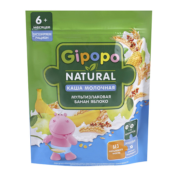 Каша Gipopo молочная мультизлаковая банан-яблоко 200г с 6мес