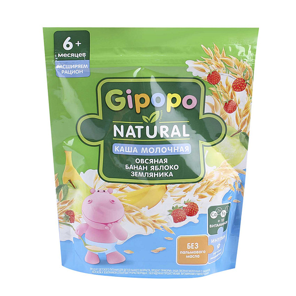 а «Гипопо» овсяная с бананом, яблоком и земляникой предназначена для питания детей от 6 месяцев. Кремообразная текстура и фруктовый вкус обеспечивают вкусное начало дня для малышей. Продукт специально разработан для расширения рациона детей, способствуя их активному росту и развитию.