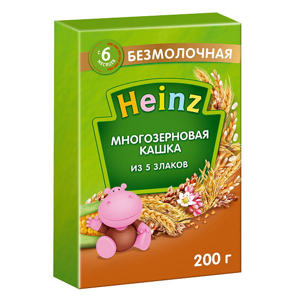 Каша Heinz безмолочная 5 злаков многозерновая 200г с 6мес
