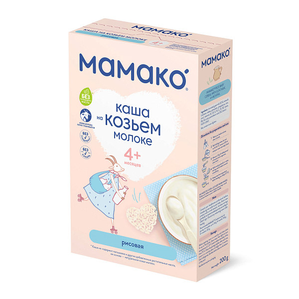 Нежная рисовая каша на козьем молоке «Мамако» измельчена до однородной массы. Ее легко сможет съесть ребенок с 4 месяцев и старше. В одной пачке находится 200 грамм полезного детского питания, которое не содержит ГМО, вредные вещества и усилители вкуса. В одной порции содержится 13 витаминов и 7 минералов. Это помогает правильному развитию детского организма. Козье молоко придает каше неповторимый сливочный вкус, улучшает пищеварение и укрепляет иммунитет. В коробке нежно-розового цвета есть подробная инструкция, которая поможет правильно приготовить кашу. Не требует варки!
