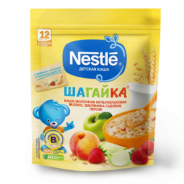 Каша Nestle Шагайка молочная мультизлаковая яблоко-земляника-персик 200г с 12мec БЗМЖ