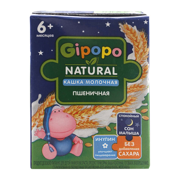 Питьевая молочная каша Гипопо без сахара подходит для детей от 6 месяцев. Каша из пшеничных злаков хорошо насыщает малыша перед сном. Упаковка 200 мл с удобной трубочкой позволяет легко взять продукт с собой для кормления вне дома. Каша готова к употреблению. По желанию ее можно перелить в бутылочку и подогреть. В ней нет красителей, консервантов и ГМО.