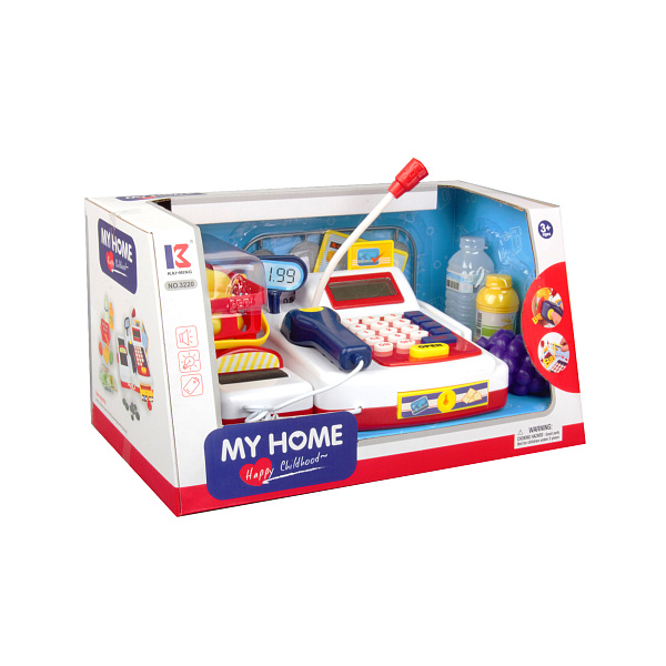 С такой кассой играть в продавца станет еще интереснее, реалистичность придает внешний вид и широкий набор функций. На панели активные кнопки с цифрами, а при нажатии «open» — выезжает лоток для денег, прямо как в настоящем магазине. Сканер для проверки штрих-кодов на продуктах издает характерный писк, а работающий микрофон усиливает громкость голоса. В комплекте также красная пластиковая корзинка для покупок и набор товаров — муляжи фруктов, бутылка с молоком и соком. Ребенку интересно примерять на себя разные роли, а здесь он может быть в роде продавца и покупатели, или привлечь друзей.