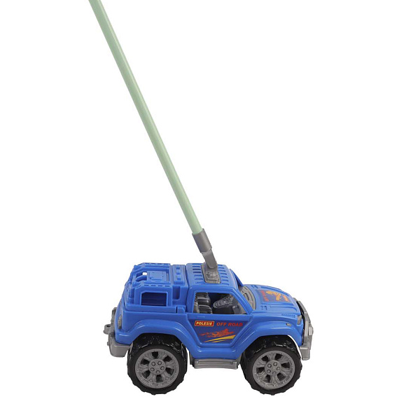Машинка-каталка выполнена с реалистичными деталями: мощными колесами, крышей и багажником. Игрушку весело брать с собой в детский сад или на прогулку.