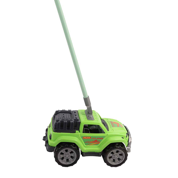Машинка-каталка выполнена с реалистичными деталями: мощными колесами, крышей и багажником. Игрушку весело брать с собой в детский сад или на прогулку.