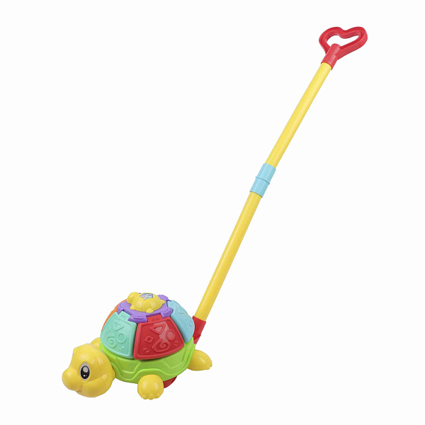 Каталка-игрушка Черепашка с ручкой разноцветная