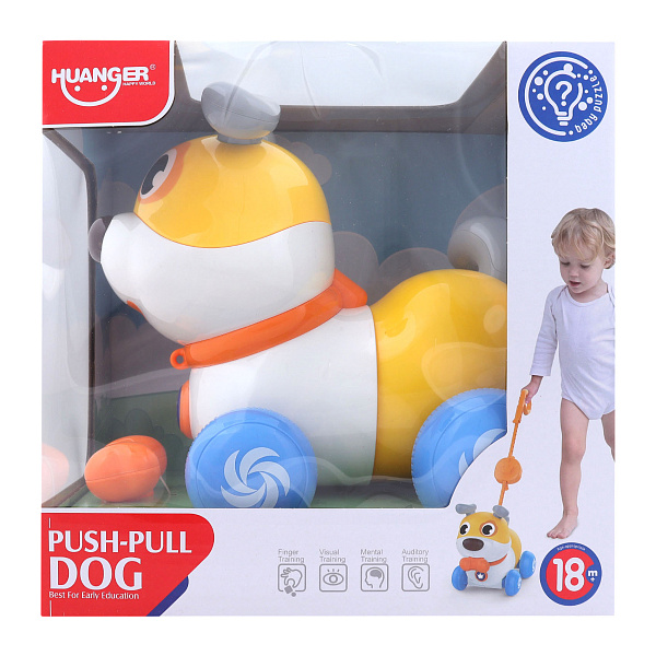 Каталка интерактивная Huanger Собачка со съемной рукояткой и звуковыми эффектами разноцветная с 18мес