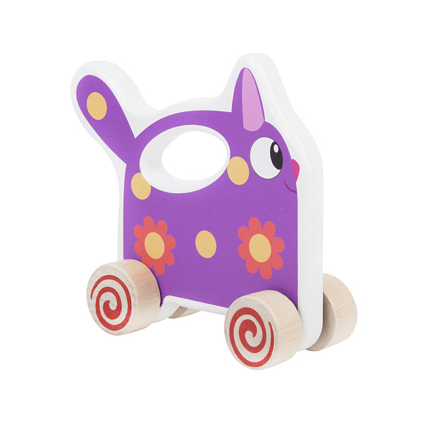 Деликатная кошечка «Мяу», которая по мультфильму смотрит на всех сверху вниз, выполнена из высококлассного дерева. Нежная улыбка кошечки и хвост «трубой» ясно дадут понять малышу, что кошечка хочет поиграть. Обтекаемая форма игрушки безопасна для ребенка. На спине вырезана комфортная ручка, чтобы малышу было легче катать игрушку по полу. Каталка раскрашена в цвета героини известного мультфильма «Деревяшки» и детально повторяет ее образ. На колесах нарисованы спирали, которые помогут ребенку визуально понять, когда они вращаются, а когда стоят. В процессе игры развивается моторика рук и воображение для увлекательных игровых сценариев.