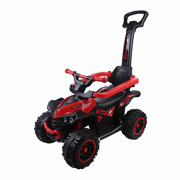 Каталка-квадроцикл «Спорт» красный с ручкой - это яркая и динамичная игрушка для малышей от 1 года, которая сочетает в себе каталку, машинку и тренажер для первых шагов.