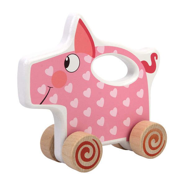 Веселый поросенок из мультипликационного сериала «Деревяшки» будет рад составить малышу компанию во время прогулки и домашних игр. Существенным преимуществом игрушек из натуральной древесины является их экологическая чистота и большой запас прочности. Комфортная ручка позволит ребенку самостоятельно перемещать каталку в любом направлении. В процессе игровой деятельности дети познают окружающий мир. Манипуляции с изделием улучшают координацию движений, развивают моторные функции, положительно влияют на память, речь и воображение.