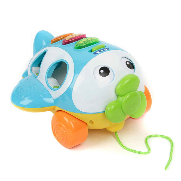 Игрушка-сортер самолет на веревочке – игрушка с множеством развивающих функций. С ее помощью малыш развивает мелкую моторику, логическое мышление, координацию и воображение. У игрушки есть три обучающих режима, с помощью которых малыш сможет выучить свои первые буквы, цифры и геометрические фигуры. При попадании верных фигурок в сортер, самолетик расскажет короткий стих про соответствующую геометрическую фигуру. Весь игровой процесс происходит со звуковым и световым сопровождением, а время за игрой пролетает незаметно!