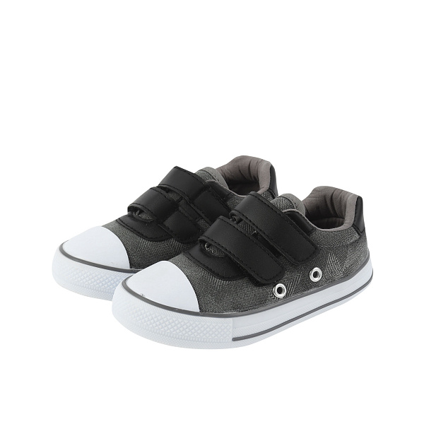 Детские полукеды выполнены в сером цвете с черными застежками-липучками и белыми прорезиненными носками. Материал верха на 80% состоит из текстиля, что обеспечивает воздухопроницаемость, а 20% искусственной кожи добавляют износостойкость. Подошва изготовлена из ПВХ, что гарантирует прочность и хорошее сцепление с поверхностью.