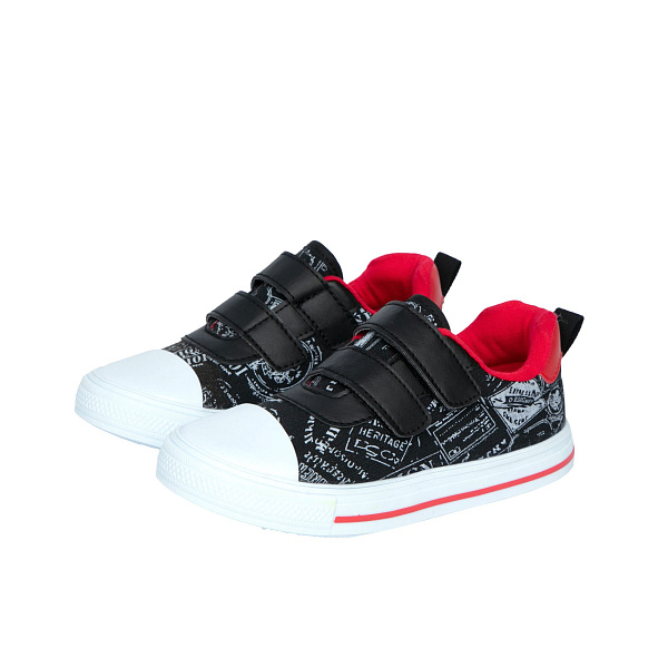 Кеды Pasito на двойной липучке с красными элементами принт с надписями черные