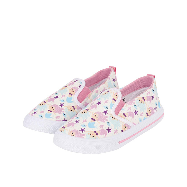 Кеды Pasito на эластичной резинке принт русалочки бело-розовые