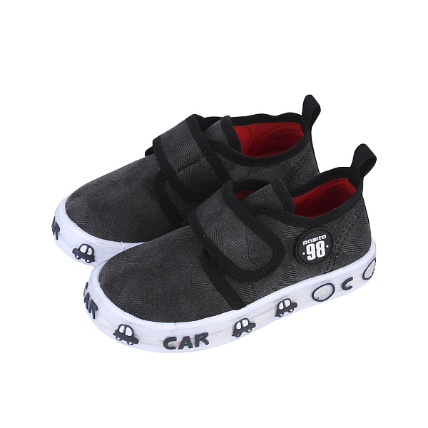 Кеды Pasito на липучке с машинками подошва с огоньками черные