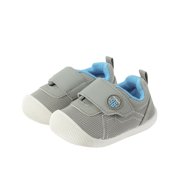 Детские кроссовки для мальчиков ясельного возраста выполнены в сером цвете с синими внутренними элементами и застежками-липучками в тон обуви. Верх сделан из текстиля, что обеспечивает воздухопроницаемость, а 20% искусственной кожи добавляют износостойкость. Подошва изготовлена из ПВХ, что гарантирует прочность и хорошее сцепление с поверхностью.