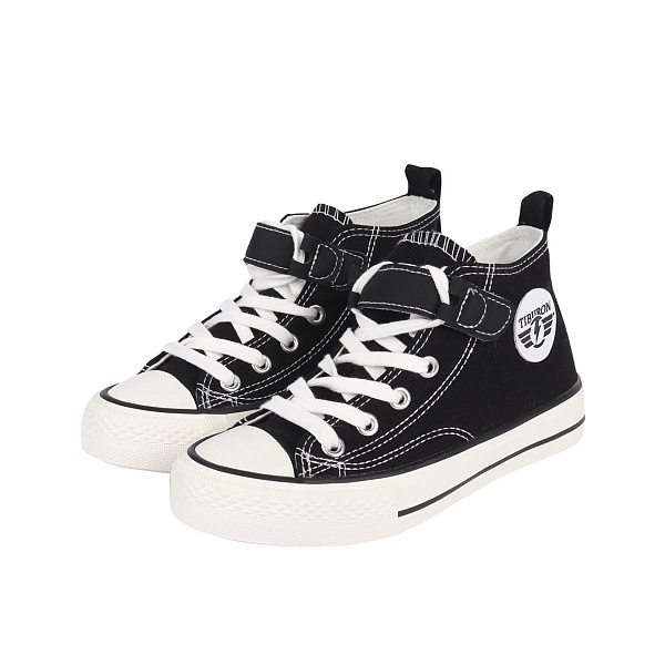 Кеды для мальчика пошиты по классическому образцу. Они традиционного черно-белого цвета.