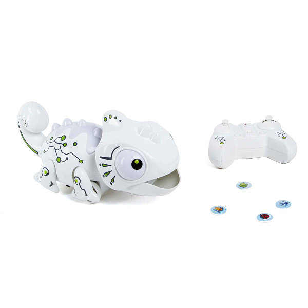 Хамелеон на управлении станет новым забавным питомцем для вашего ребенка. Игрушка, будто живая, ловит насекомых своим длинным зеленым языком на магнитах, для этого в комплекте представлено 4 фишки. Чтобы управлять хамелеоном, достаточно взять в руки специальный джойстик. Нажимая на кнопки, ребенок будет наблюдать, как хамелеон двигает хвостом, а также меняет цвета, сбивая с толку хищников. В процессе игры ребенок разввивает моторику рук, воображение, а также знакомится с жизнью хамелеонов.