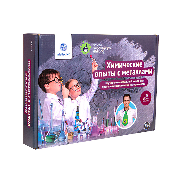Предложить провести химические опыты можно ребенку с десятилетнего возраста. В прочной коробке из картона есть все необходимые реактивы и приспособления для работы в домашней лаборатории юного химика.