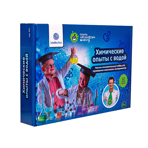 Вода – это доступный и увлекательный для исследования материал. С помощью готового набора ребенок сможет самостоятельно проводить захватывающие химические опыты. В прочной коробке есть необходимые приспособления, средства защиты, а также реактивы.