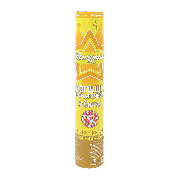 - Тип: пневматическая хлопушка, безопасная для использования в помещениях