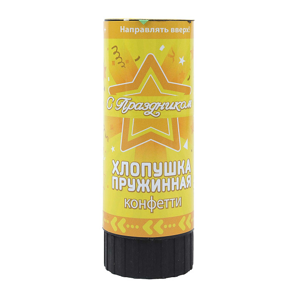 - Тип: пружинная хлопушка, полностью безопасная для детей и использования в помещениях