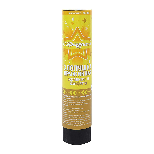 - Тип: пружинная хлопушка, абсолютно безопасная и простая в использовании, подходит для детей