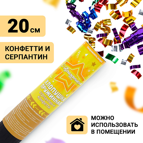 Хлопушка Lanson Toys с разноцветным конфетти и серпантином 20см