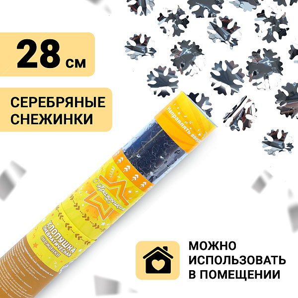 Хлопушка новогодняя Lanson Toys с серебряными снежинками 28см