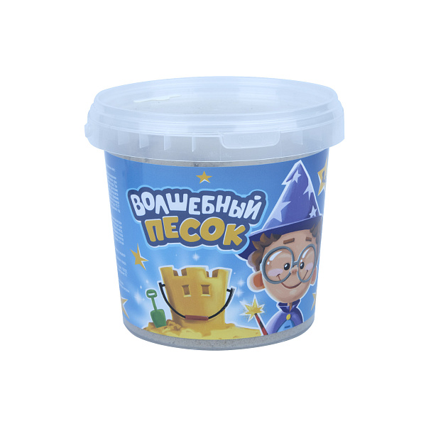 В прочном ведре из прозрачного пластика находится приятный на ощупь пластичный материал с песчаной структурой. Он предназначен для малышей старше 3 лет. Манипуляции с кинетическим песком надолго займут внимание ребенка и станут полезным тренажером для развития моторики рук. Из рассыпчатой массы несложно лепить придуманные фигуры, а также можно рисовать на его поверхности. В составе продукта не содержится вредных химических компонентов. Он не засыхает на открытом воздухе, не пачкает пальцы, не усложняет уборку помещения. Вес кинетического песка составляет - 1,2кг.