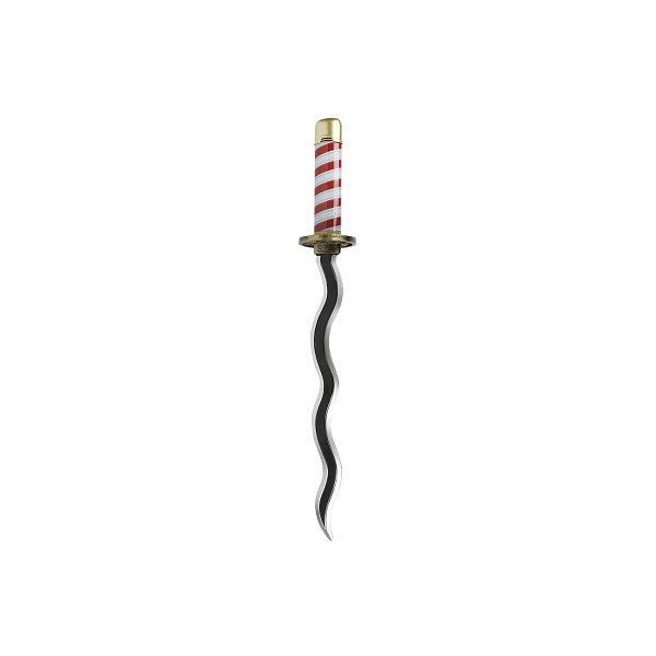Почувствовать себя героем аниме поможет клинок «Ничирин Обанай Игуро». Лезвие меча по форме напоминает змею, оно окрашено в серебряный цвет с черной вставкой посередине. Ручка цилиндрической формы, обклеенная наклейкой двух цветов: красный и белый. Есть дополнительные золотые вставки на рукояти. Установленный в рукоятке звуковой модуль добавляет динамичности и реализма, проигрывая звуки сражения. Клинок выполнен из пластика и безопасен для детей, лезвие меча затуплено.