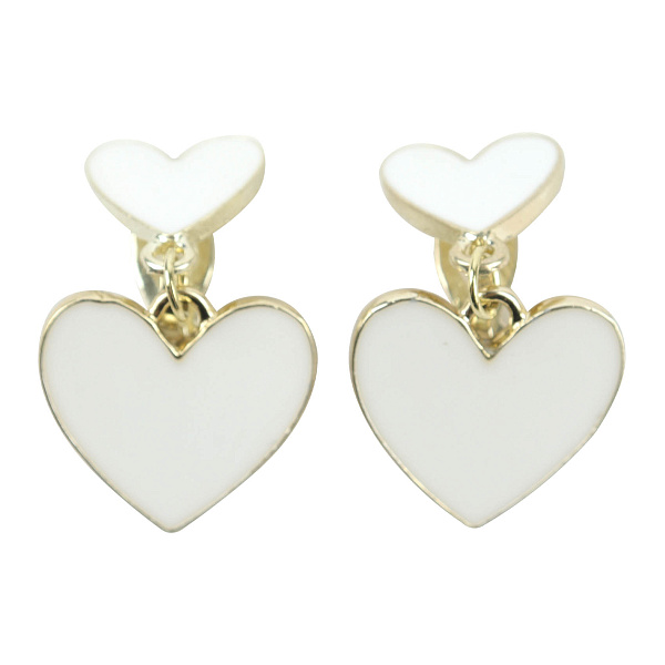 Эти минималистичные серьги-клипсы сделает элегантным даже повседневный образ и станет милой деталью к праздничному наряду. Сердечки из золотистого металла покрыты белым пластиком.