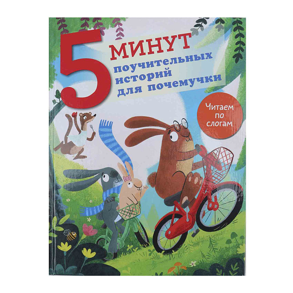Книга «5 поучительных историй для почемучки» имеет твердый переплет. Книга входит в серию «5 минут: читаю сам с удовольствием» для детей, которые только начинают читать. Обложка яркая, с рисунком кроликов и лесных зверей. Иллюстрации детские, насыщенные, занимают большую часть страницы.