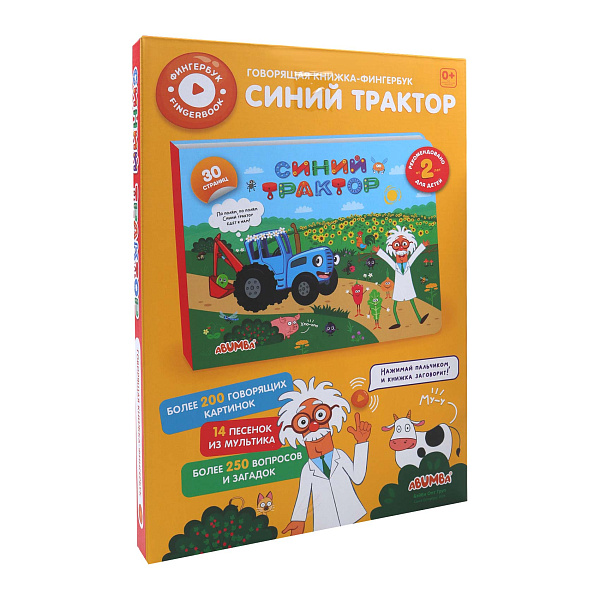 Интерактивная книга Abumba «Синий трактор» создана по мотивам популярного мультсериала. Страницы содержат более 200 говорящих картинок. В память устройства встроено 14 песен и более 250 вопросов с загадками. Громкость звука можно менять по необходимости. Книга работает от встроенного аккумулятора. В комплекте находится кабель Type-C для зарядки.