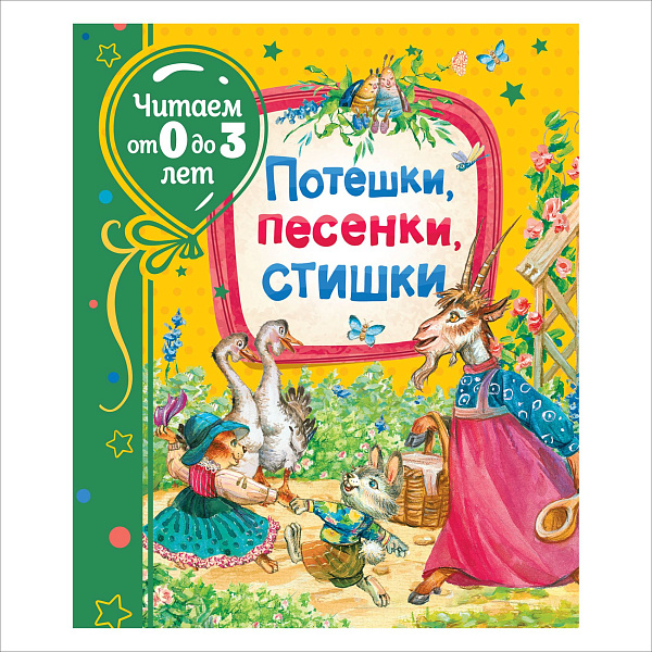 Кроме вечерних сказок, положительное влияние на развитие малыша с рождения и до 3 лет окажет книга «Потешки, песенки, стишки». В сборнике большую часть занимают яркие достоверные иллюстрации — прочитав короткое вступление, можно дальше рассказывать по картинке, придумывая собственный сюжет.