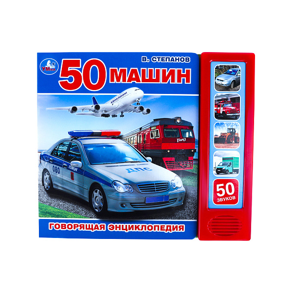 Яркая книга «Говорящая энциклопедия: 50 машин» дополнена звуковыми функциями. Издание предназначено для мальчиков старше года. Оно привлечет внимание малыша красочными иллюстрациями, развлечет стихами. На 10 страницах из плотного картона представлены транспортные средства. С помощью крупных кнопок дети смогут включать веселые звуки, песенки и фразы из мультфильмов.